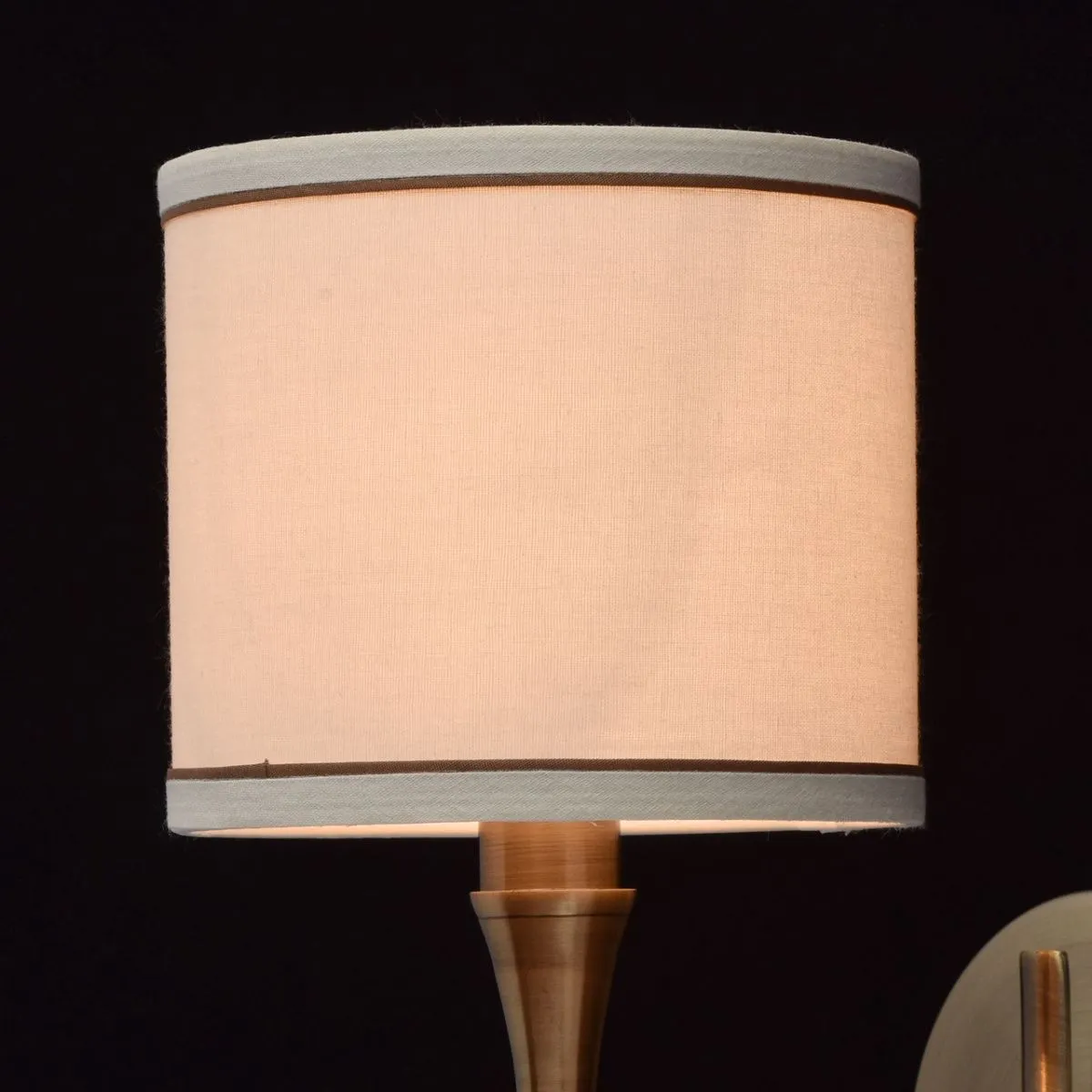 Металлическое основание цвета бронзы. Абажур -текстиль сливочного цвета