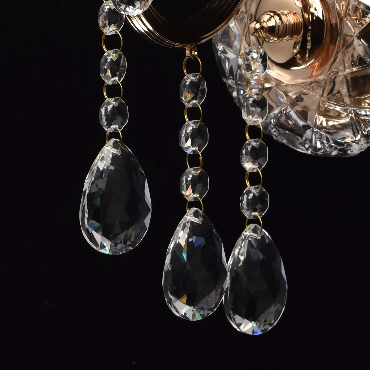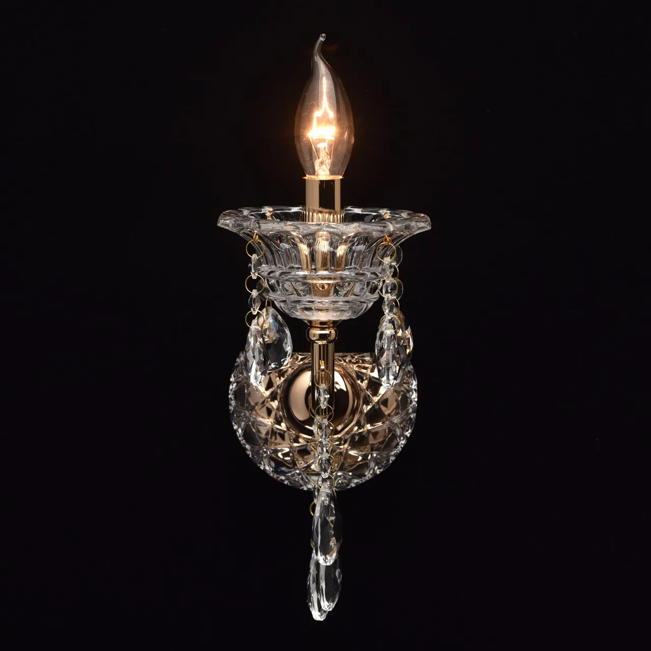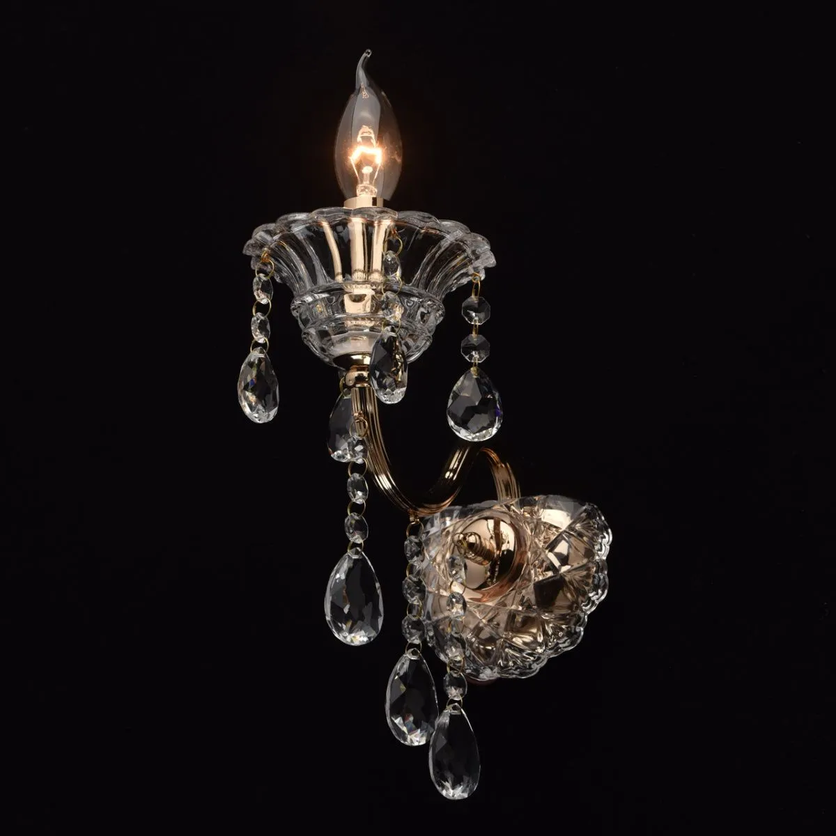 Металлическое основание цвета золото. Декор - хрусталь, декоративное стекло