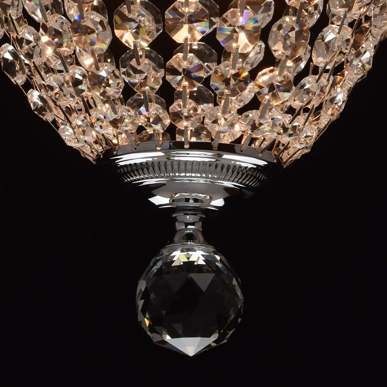 Металлическое основание цвета хрома.Подвески из хрусталя